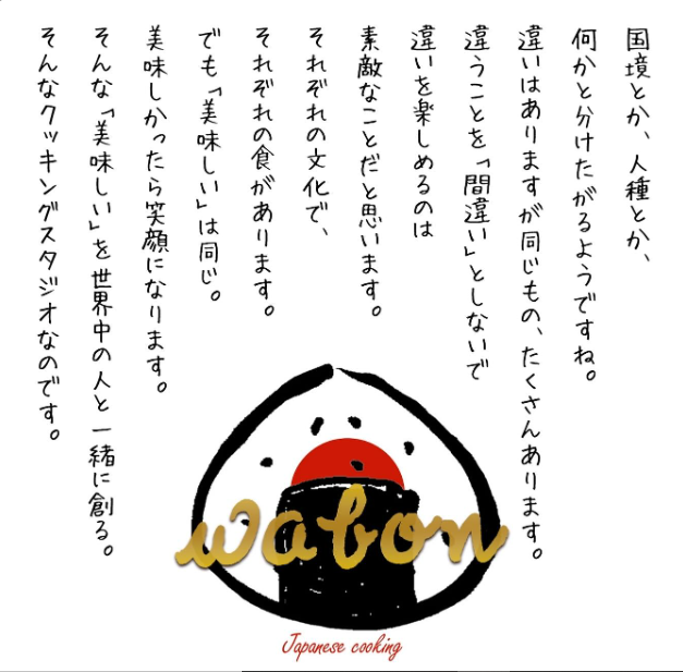 国境とか、人種とか、何かと分けたがるようですね。違いはありますが同じもの、たくさんあります。違うことを「間違い」としないで違いを楽しめるのは素敵なことだと思います。それぞれの文化で、それぞれの食があります。でも「美味しい」は同じ。美味しかったら笑顔になります。そんな「美味しい」を世界中の人と一緒に創る。そんなクッキングスタジオなのです。